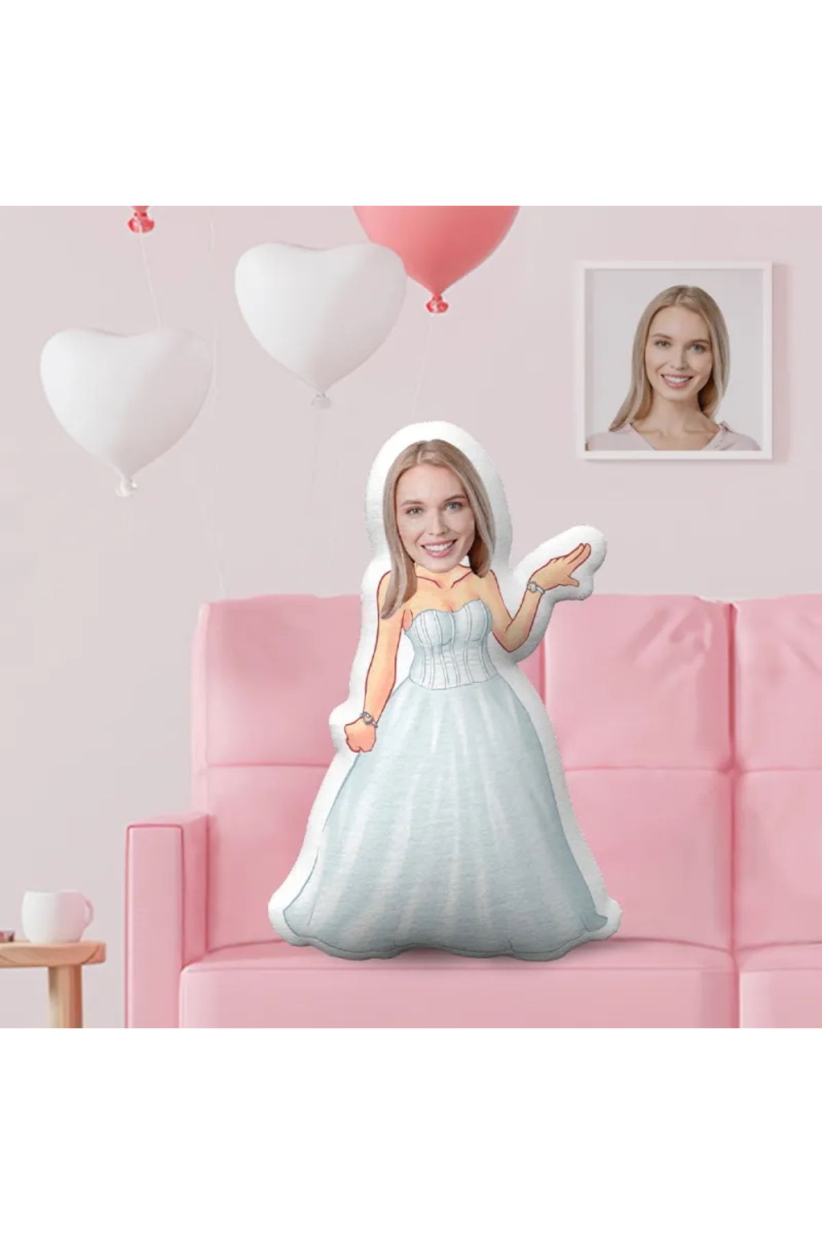 Kişiye Özel Gelinlikli Kız Tasarımlı Şekilli Yastık